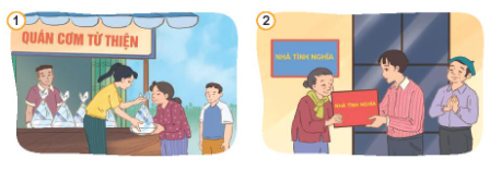 b. Em hãy nêu những biểu hiện của sự cảm thông, giúp đỡ người có hoàn cảnh khó khăn trong những bức tranh sau: