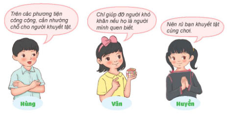 – Em đồng ý với ý kiến của Huyền vì việc làm này thể hiện sự chia sẻ, không phân biệt với các bạn có khiếm khuyết.