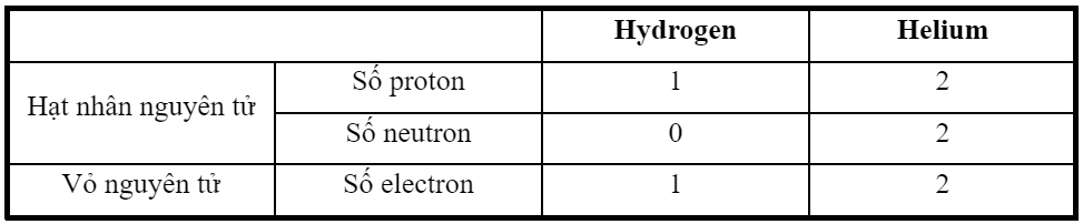 – Dựa vào dữ kiện bài 2.7 trong sách bài tập để biết số proton và electron của nguyên tử hydrogen và helium.