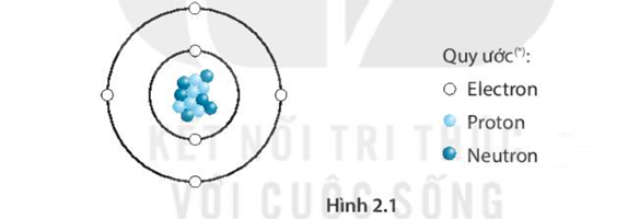 – Ví dụ về nguyên tử He (ở Hình 2.2) có 2 electron ở vỏ electron, 2 proton và 2 neutron ở hạt nhân.