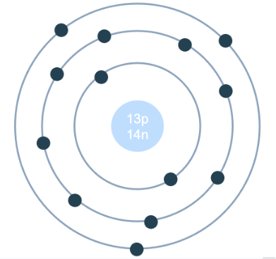 Nguyên tử aluminium gồm hạt nhân có 13 proton, 14 neutron, và vỏ nguyên tử có 13 electron.