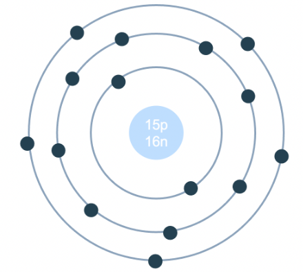 Nguyên tử phosphorus có 15 electron, lớp thứ nhất có 2 electron, lớp thứ hai có 8 electron, lớp thứ ba có 5 electron