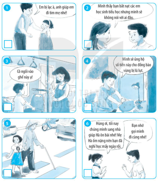 Em hãy đánh dấu X vào ô trống ở bức tranh thể hiện tình yêu thương con người. Lòng yêu thương con người xuất phát từ đâu. Em tán thành hay không tán thành với ý kiến nào dưới đây. Theo em, một số bạn phê bình Linh như vậy có đúng không. Vì sao. Nếu là thành viên trong lớp của Linh, em sẽ tham gia hoạt động này như thế nào. Nêu một số việc làm thể hiện tình yêu thương con người mà em đã thực hiện. Em hãy viết một đoạn văn để phê phán những hành vi trái với tình yêu thương con người mà em biết