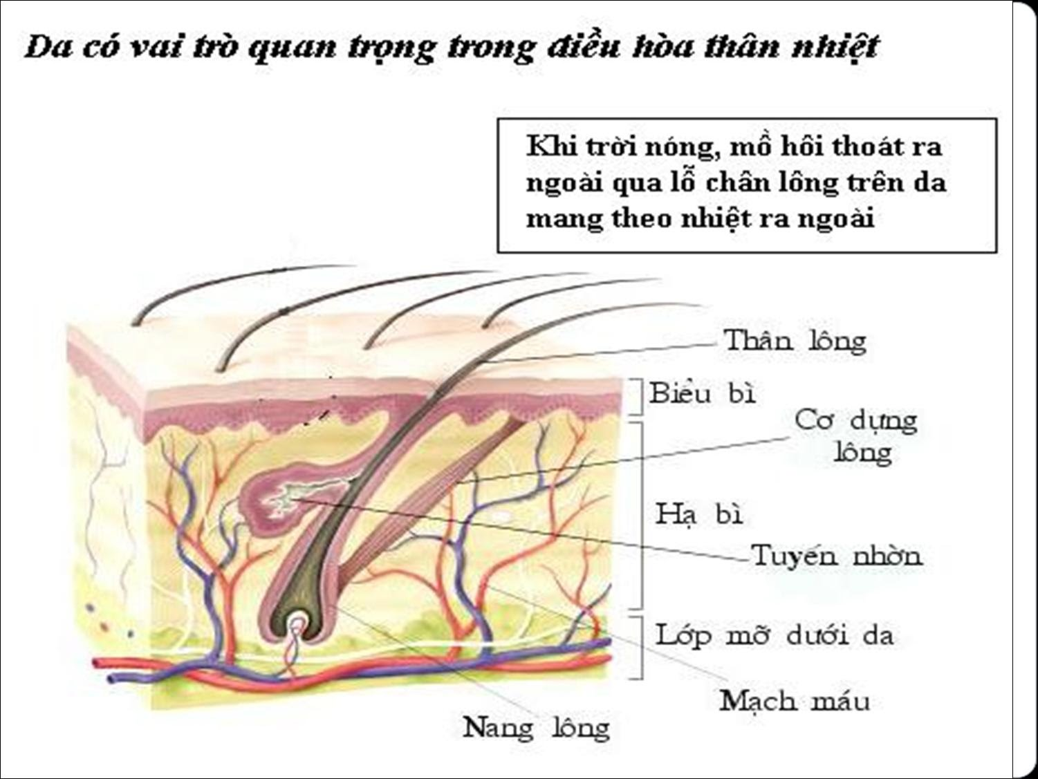 Da có vai trò quan trọng trong sự điều hòa thân nhiệt thoát mồ hôi mang theo nhiệt ra ngoài cơ thể. Nhịp thở, nhịp tim tăng cao giúp cung cấp oxygen cho tế bào.