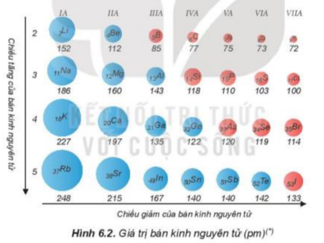 – Bán kính nguyên tử: Đi từ trên xuống dưới, số lớp electron tăng => Lực hút giữa hạt nhân và lớp electron ngoài cùng giảm dần => Bán kính tăng dần