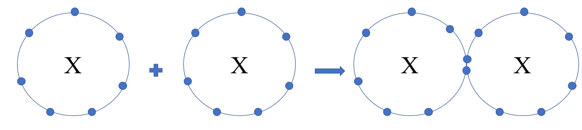 + Khi nguyên tử halogen liên kết với phi kim => 2 phi kim kết hợp với nhau tạo thành phân tử, chúng sẽ góp electron để tạo thành các cặp electron dùng chung => Halogen sẽ góp chung 1 electron để đạt cấu hình electron bền vững