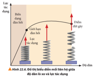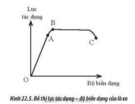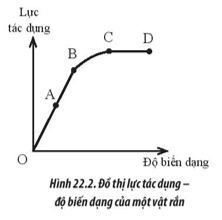 Hình 22.2 mô tả đồ thị lực tác dụng – độ biến dạng của một vật rắn. Giới hạn đàn hồi của vật là điểm nào trên đồ thị?