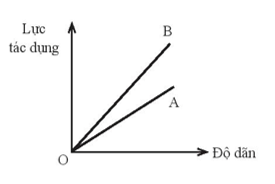 Cùng một lực tác dụng, lò xo A biến dạng nhiều hơn lò xo B nên lò xo B có độ cứng lớn hơn lò xo A.