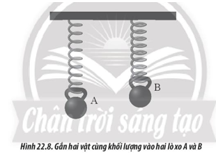Một học sinh thực hiện thí nghiệm như Hình 22.8 để đo độ cứng của hai lò xo A và B có cùng chiều dài tự nhiên. Cho biết hai vật nặng có cùng khối lượng. Hãy vẽ phác họa đồ thị biểu diễn mối liên hệ giữa độ dãn và lực tác dụng lên các lò xo A và B trên cùng một đồ thị.