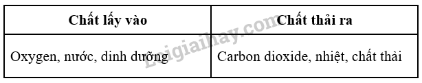 – Lấy các chất cần thiết từ môi trường (như nước, khí oxygen, chất dinh dưỡng, …) và thải các chất không cần thiết (như khí carbon dioxide, chất cặn bã, …) ra ngoài môi trường.