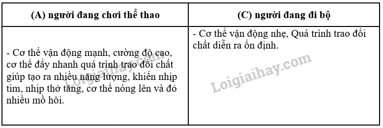 a) Hãy so sánh tốc độ trao đổi chất ở ba trường hợp trên. Giải thích.
