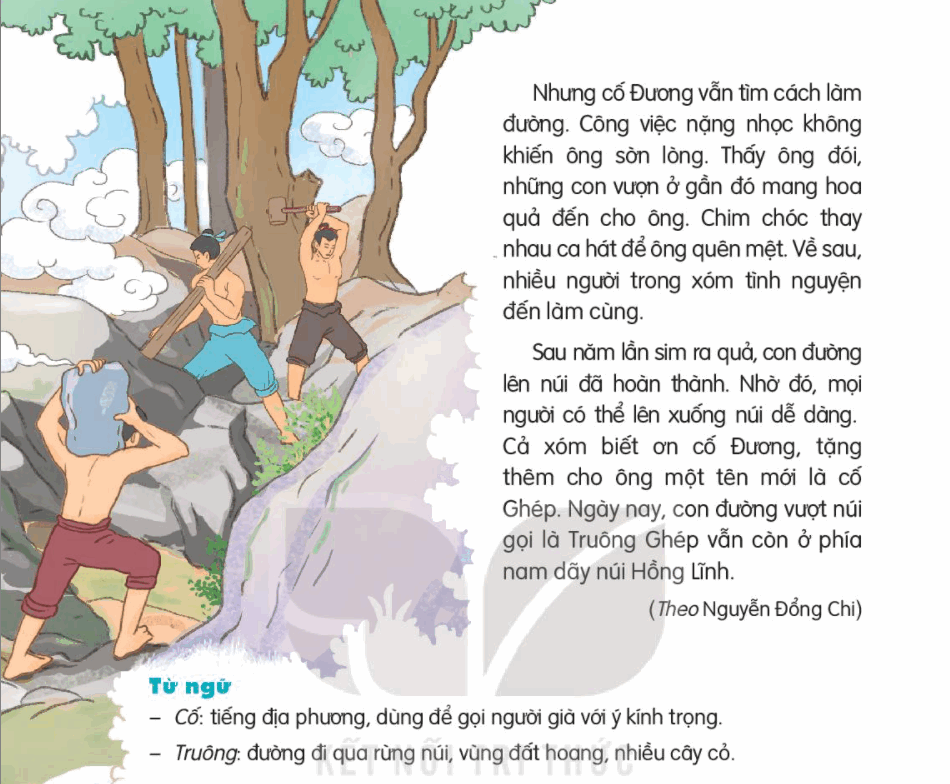 Bài đọc kể về ông cố Đương. Nhờ có sự can đảm và quyết tâm của ông mà con đường từ xóm nhỏ lên núi Hồng Lĩnh được xây dựng.