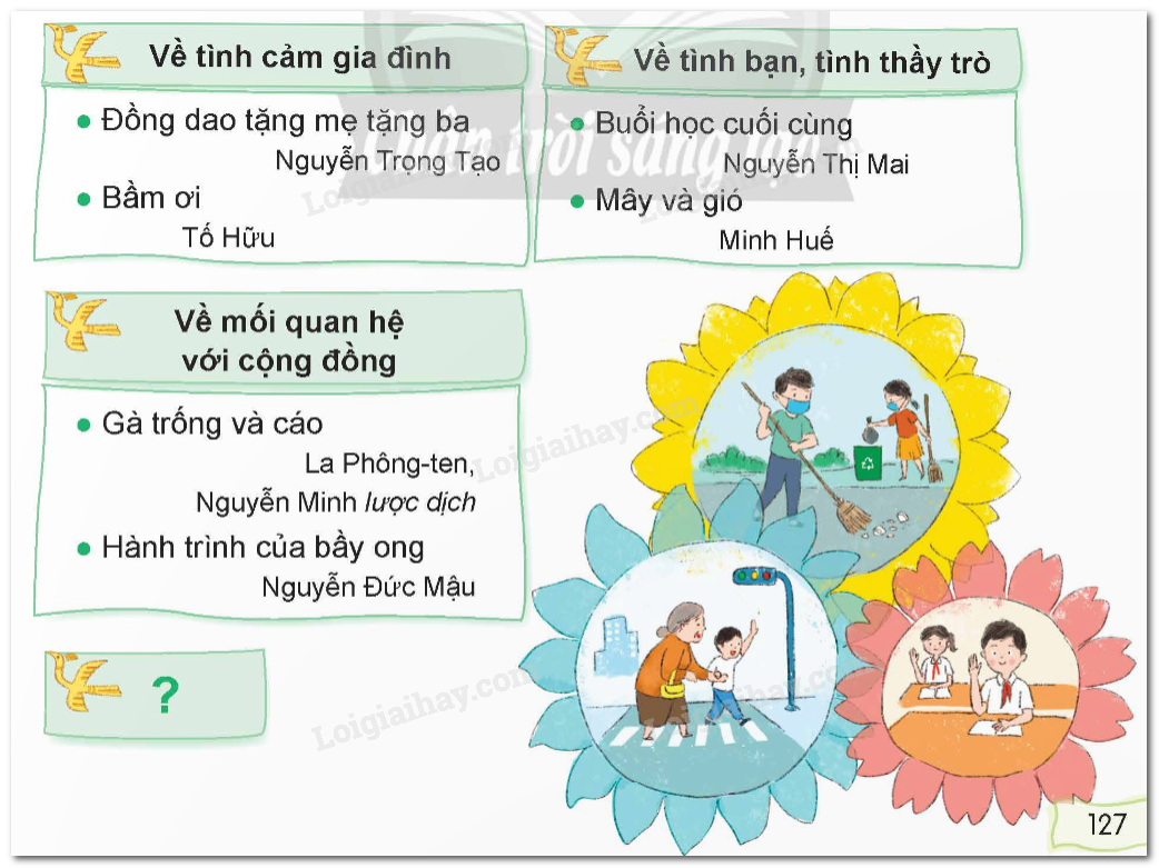 – Bài thơ, đồng dao, ca dao,… đã đọc.