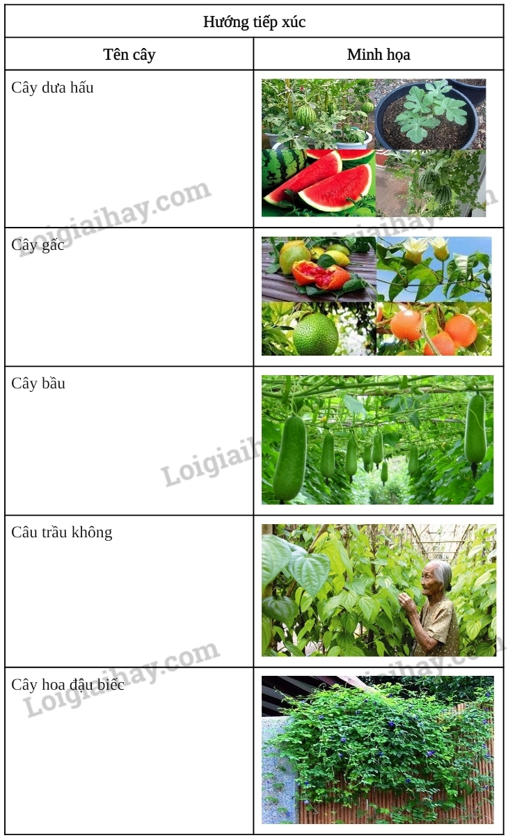 Các loài thực vật thuộc họ bầu bí, các cây thân leo thường có tính hướng tiếp xúc.