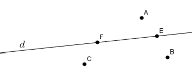 Hình vẽ nào dưới đây thể hiện đúng theo cách diễn đạt: “ Đường thẳng \(d\) đi qua các điểm \(A;B;C\) nhưng không đi qua các điểm \(E;F\)