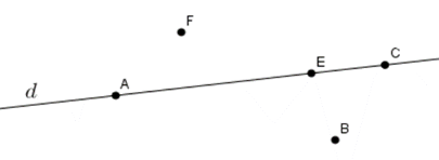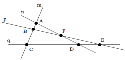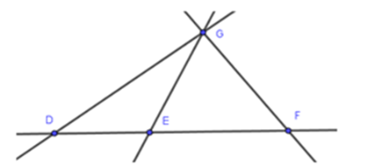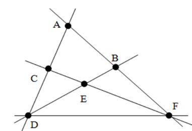 Trên hình vẽ, điểm \(F\) nằm trên bao nhiêu đường thẳng?