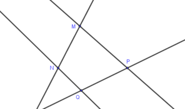 Có \(5\) đường thẳng phân biệt là: \(MR,RN,NQ,QP,PM\)