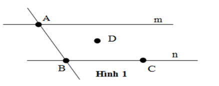 Hình B: Đường thẳng $m$ cắt đường thẳng $n$ tại $A,{\rm{ }}a$ cắt m tại $C,$ cắt $n$ tại $B$ (trái với đề bài là $a$ không cắt $m$) (loại)