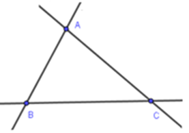 Các đường thẳng trong hình là: \(AB,BC,CA\)