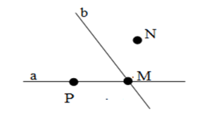 “ Đường thẳng \(a\) chứa điểm \(M\) và không chứa điểm \(P\) . Điểm \(O\) thuộc đường thẳng \(a\) và không thuộc đường thẳng \(b.\)”