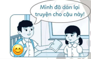 Bạn nam dán lại cuốn truyện đã làm rách của bạn nữ. Bạn nam đã sửa chữa lỗi lầm của mình bằng cách khắc phục lỗi mà mình đã gây ra. Đây cũng là một cách để thể hiện lời xin lỗi chân thành.