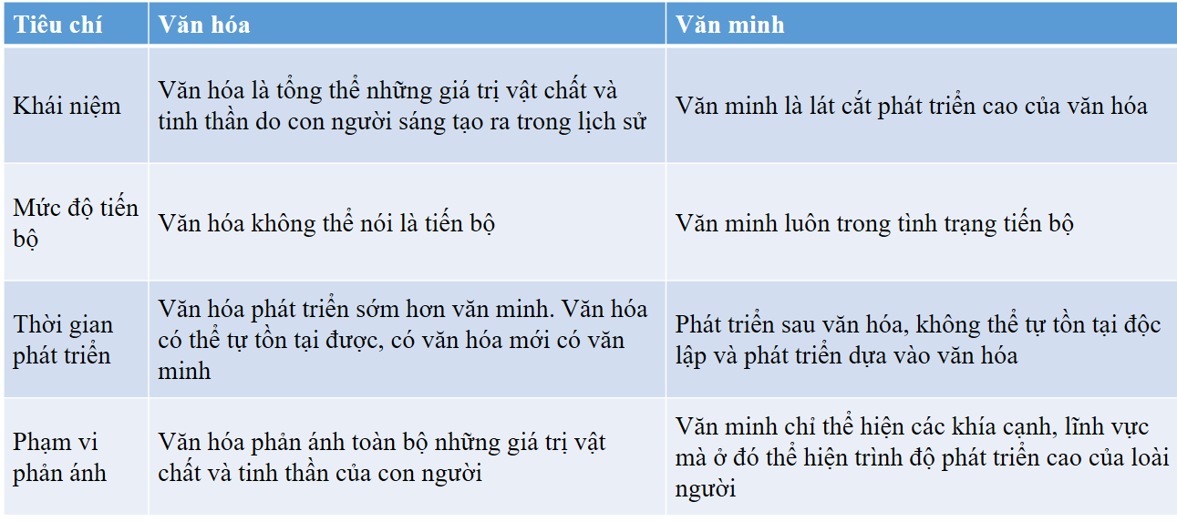 2. Em hãy cho biết sự khác nhau giữa văn minh và văn hóa