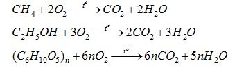 Viết phương trình hóa học khi đốt cháy hoàn toàn một số nhiên liệu sau: khí thiên nhiên (thành phần chính là CH4), cồn (C2H5OH), gỗ (C6H10O5)n).