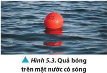 Quan sát Hình 5.3 và dự đoán phương chuyển động của quả bóng khi có sóng trên mặt nước trong điều kiện lặng gió.