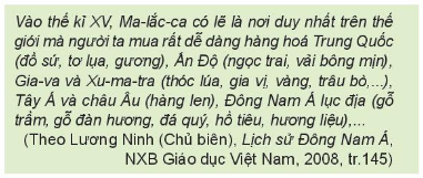 Qua đoạn tư liệu, ta thấy hoạt động kinh tế của Vương quốc Ma-lắc-ca là: