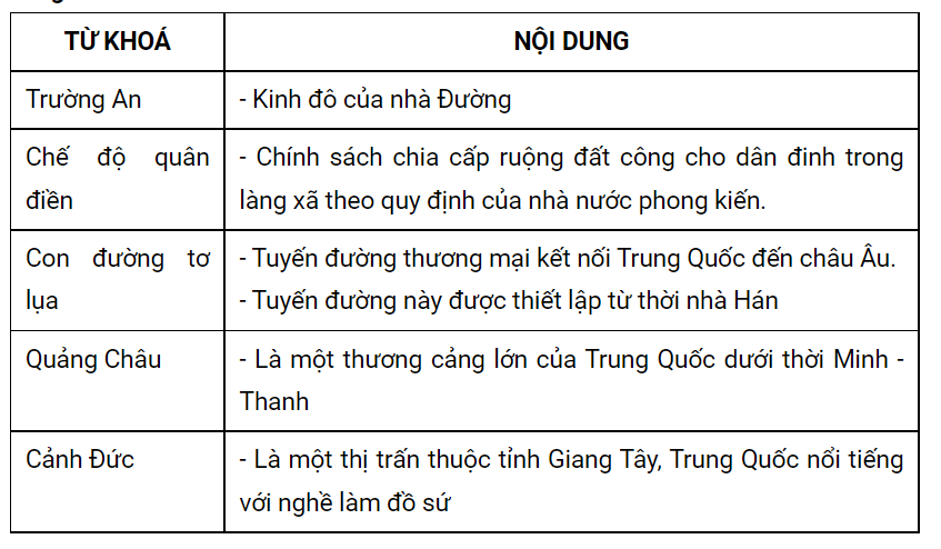 Bài tập 1: Từ thế kỉ VII đến giữa thế kỉ XIX, Trung Quốc đã trải qua các triều đại