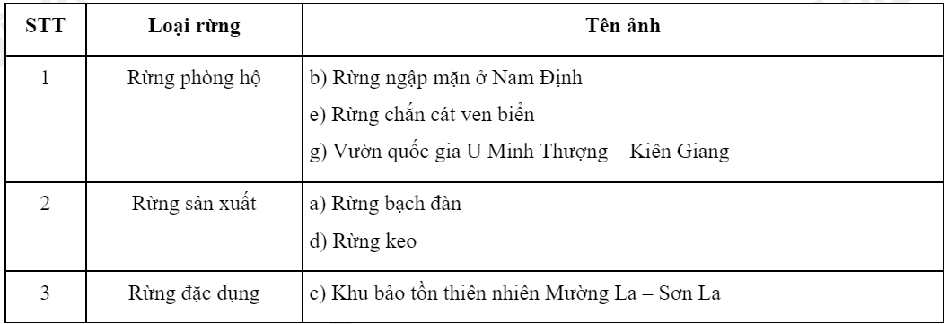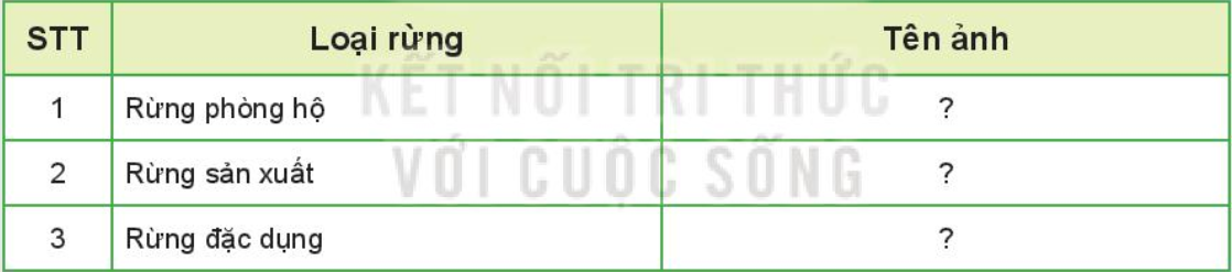 Xác định từng loại rừng phù hợp với mỗi ảnh trong hình 7.3 theo mẫu bảng dưới đây: