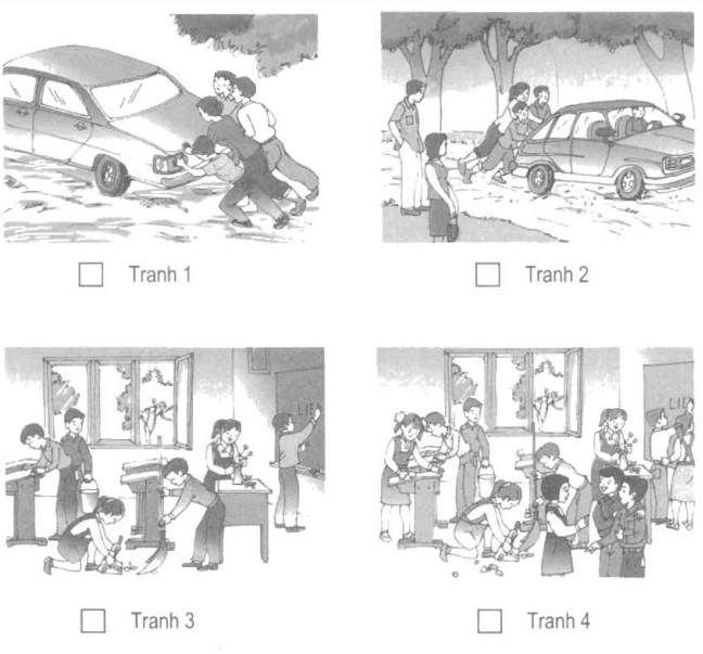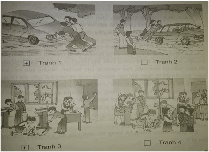 Em hãy đánh dấu + vào ô trống dưới tranh thể hiện sự hợp tác