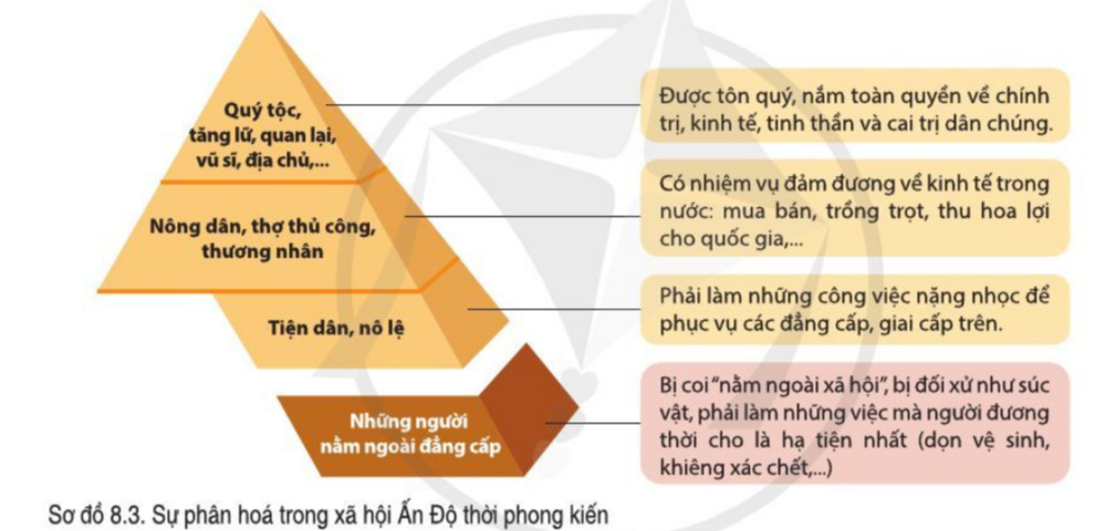 Đọc thông tin, tư liệu và kết hợp quan sát hình 8.3,  hãy khái quát tình hình xã hội của Ấn Độ dưới thời các vương triều: Gúp ta, Hồi giáo Đê-li, Mô-gôn.