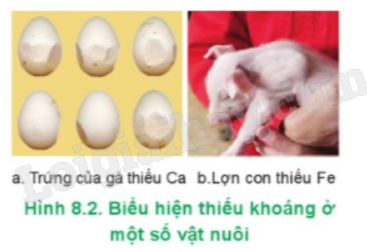 Hãy nêu các biểu hiện bệnh của vật nuôi do thiếu khoáng trong hình 8.2. Phòng các bệnh này cho vật nuôi bằng cách nào?