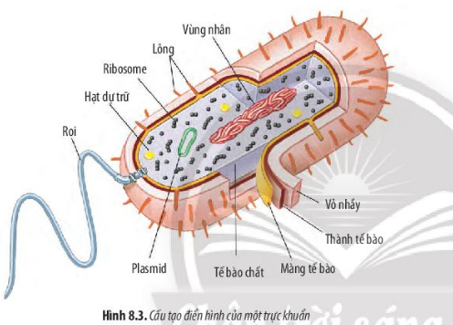 Quan sát hình 8.3 và nêu các thành phần cấu tạo của tế bào nhân sơ.