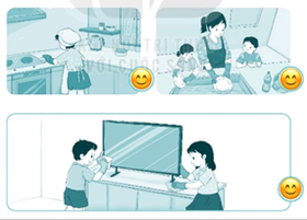 ở những tranh thể hiện việc biết bảo quản đồ dùng gia đình,