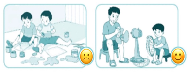 ở những tranh thể hiện việc biết bảo quản đồ dùng gia đình,