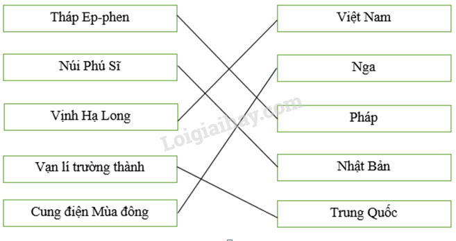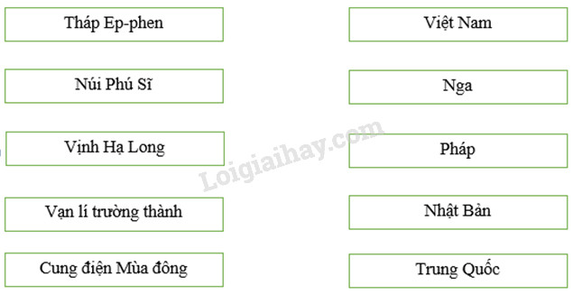 Nối mỗi danh lam thắng cảnh/ công trình kiến trúc nổi tiếng ở cột A với đất nước tương ứng ở cột B.