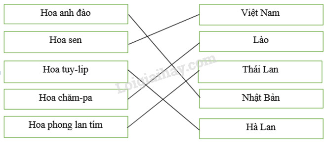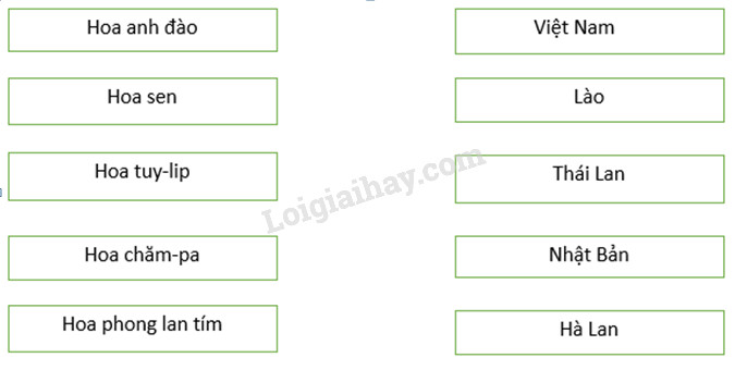 Mỗi loài hoa dưới đây là biểu trưng của đất nước nào? Hãy nối tên mỗi loài hoa với tên đất nước tương ứng.