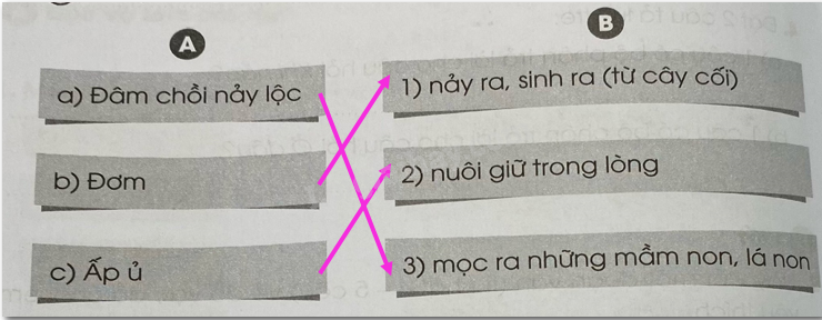 Ghép từ ngữ ở bên A với nghĩa phù hợp ở bên B: