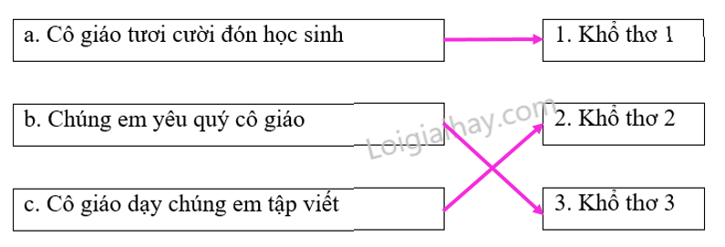 a. Cô giáo tươi cười đón học sinh            1. Khổ thơ 1