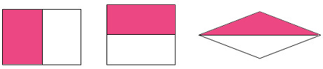 Quan sát hình vẽ và tô màu \(\dfrac{1}{2}\) mỗi hình đó.