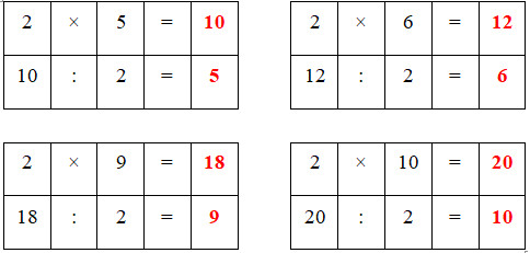 Nhẩm lại bảng nhân 2, bảng chia 2 rồi điền số thích hợp vào ô trống.
