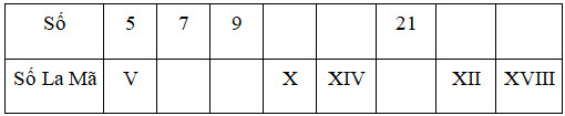 Bài 3. Điền số hoặc số La Mã vào bảng (theo mẫu)