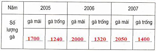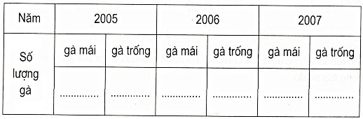 Xác định số con gà trống, gà mái trong từng năm rồi điền vào bảng đã cho.