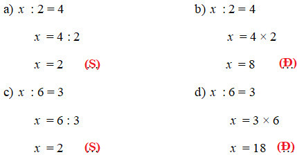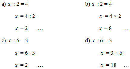 a) \(x\) : 3 = 5                               b) \(x\) : 5 = 4