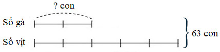 – Tìm số gà hoặc số vịt còn lại theo bài toán tìm hai số khi biết tổng và tỉ số của hai số đó.