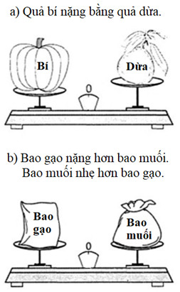a) Khi hai vật ở hai đĩa cân có cân nặng bằng nhau, kim chỉ cân sẽ đứng thẳng, năm cân bằng ở giữa.