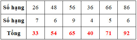 Cộng hai số hạng đã cho theo thứ tự các số từ hàng đơn vị đến hàng chục rồi điền kết quả vào ô trống thích hợp.