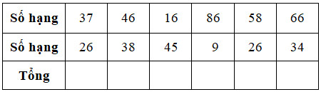 Cộng hai số hạng đã cho theo thứ tự các số từ hàng đơn vị đến hàng chục rồi điền kết quả vào ô trống thích hợp.